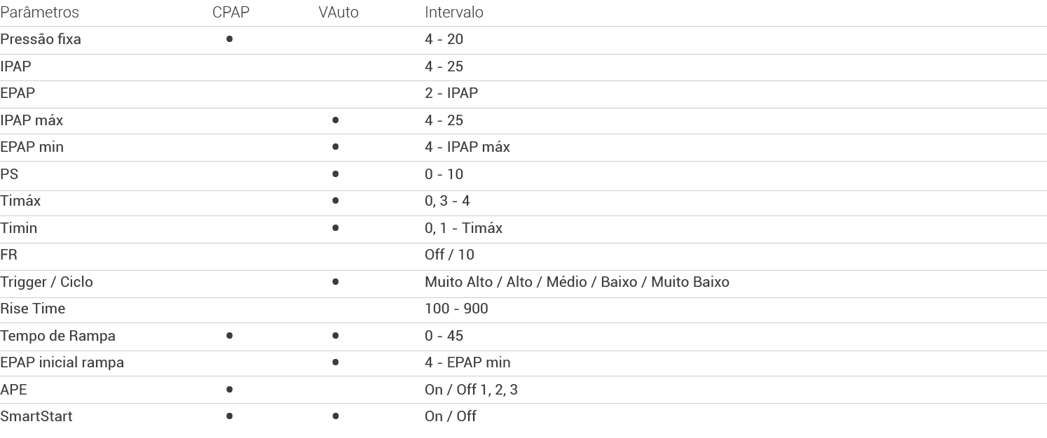 Notas: Os parâmetros podem ser alterados com o equipamento em funcionamento.