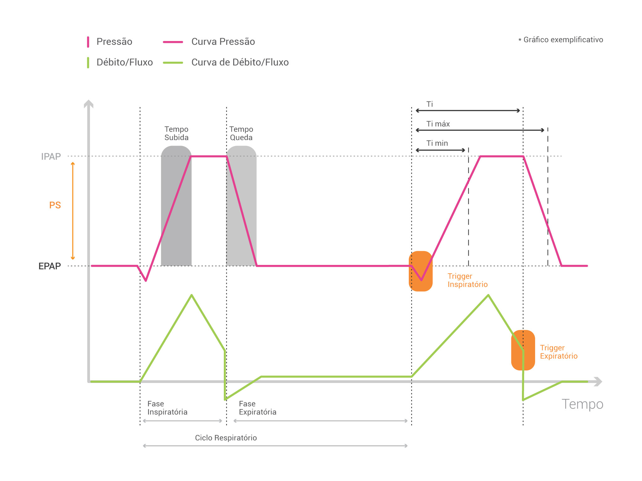 Pressure Support – Como parâmetro é a pressão acima da EPAP/PEEP sendo a diferença entre IPAP-EPAP.