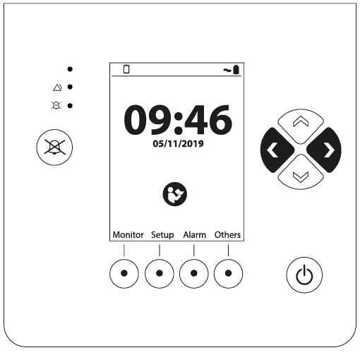 Para a escolha do modo ventilatório, visualização de curvas, e outras opções, aceda aos botões da barra de menus correspondentes.